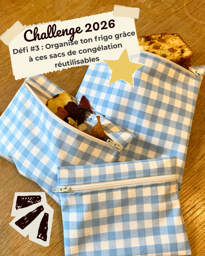 Dans ce défi, je t’invite à transformer un geste du quotidien grâce à un projet créatif utile et durable : la couture de sacs de congélation réutilisables.